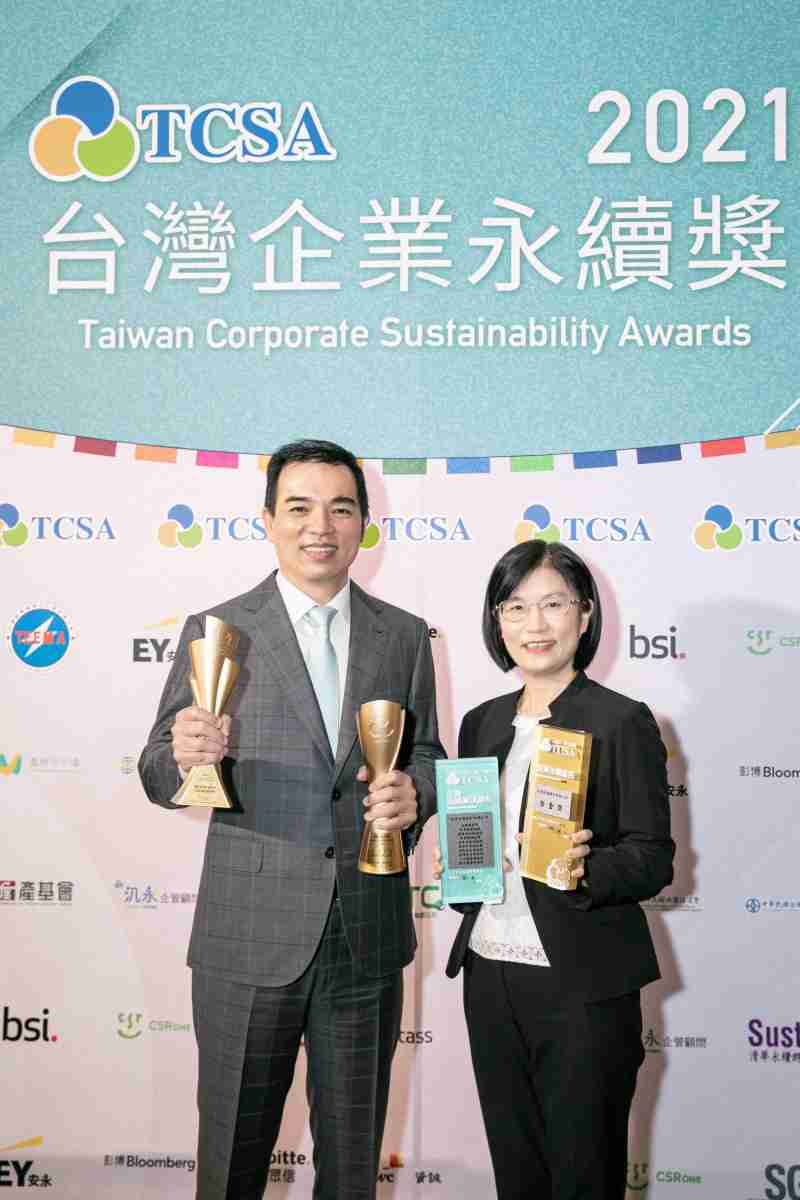 达在台湾永续奖所评比环境、、社会、、、、治理等各面向的永续绩效均获高度肯定 (左:www.z6.com光电总经理暨营运长柯富仁,,右:www.z6.com光电永续长古秀华)