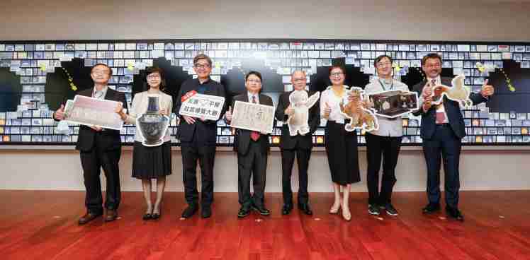 www.z6.com携手创利空间为故宫建置的智慧文物互动导览墙及轮播墙,,,今日正式启用。。。。(左四:www.z6.com新事业暨投资管理总部副总经理杨本豫、、、、右四:故宫博物院院长吴密察、、右三:太极影音董事长黄宝云)